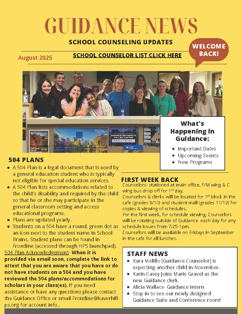 As a team we reviewed this entire document to make our expectations clearer for students, staff and families. Each new procedure and policy is aligned with the core values of Haverhill High School. You will notice that consequences for actions are not clearly spelled out. The purpose is to allow the administration the discretion to do what is best for that student. However, please note the administration team is and will be calibrated in terms of procedures and consequences to make things as fair and consistent as possible. As it is difficult to provide an all-inclusive document that captures all incidents that may occur at the high school, it serves as a supplement to the decision making of the faculty and administrative team at Haverhill High School.