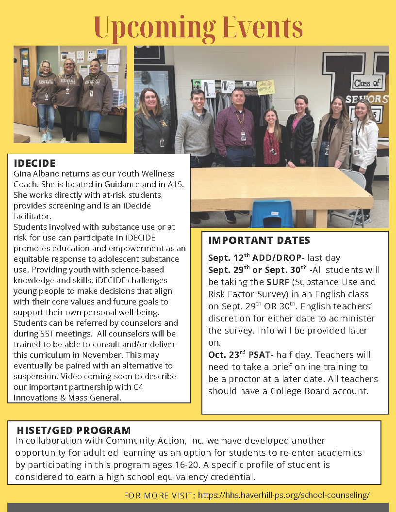 Thursday, September 4 – Meet the staff 6pm at Haverhill High School