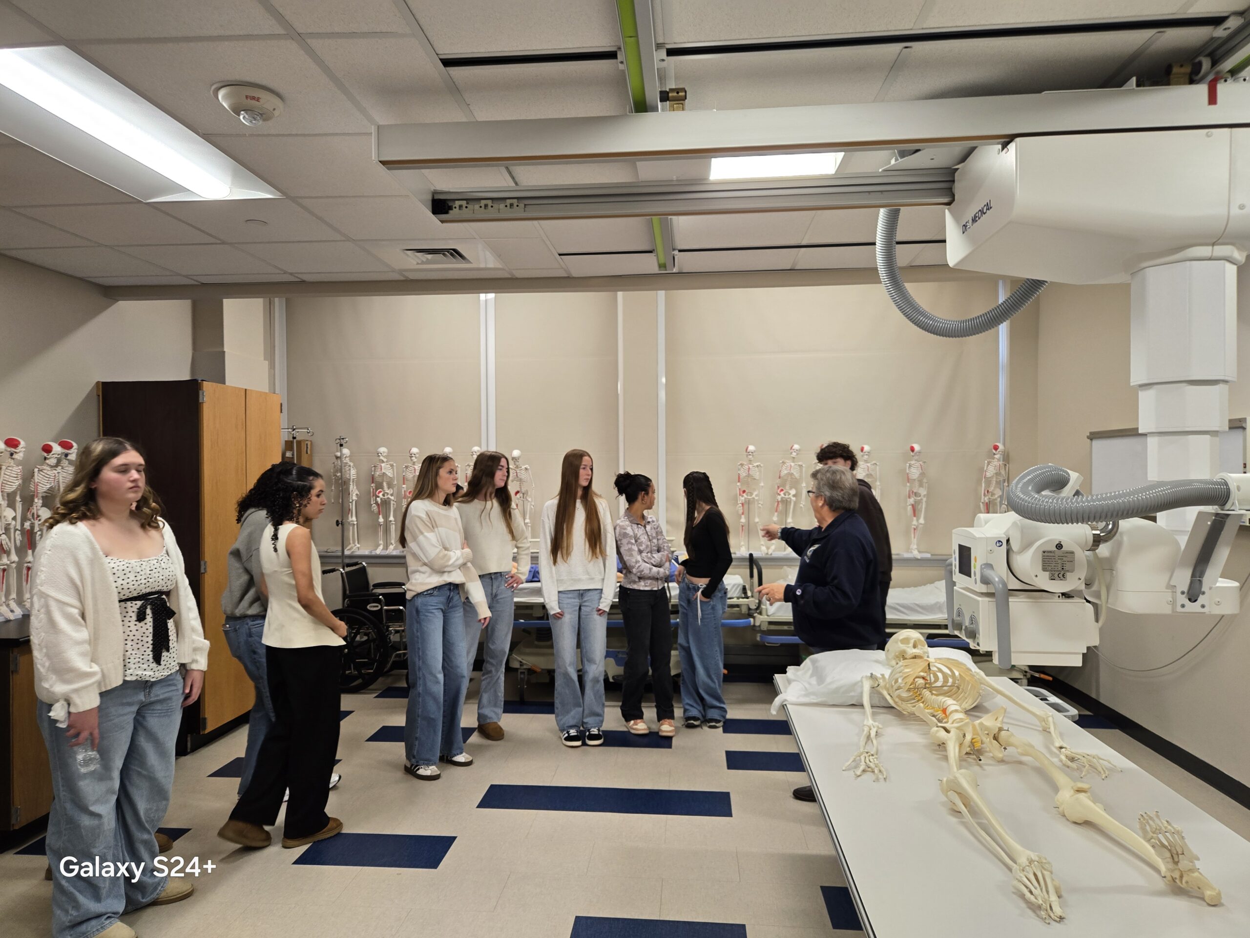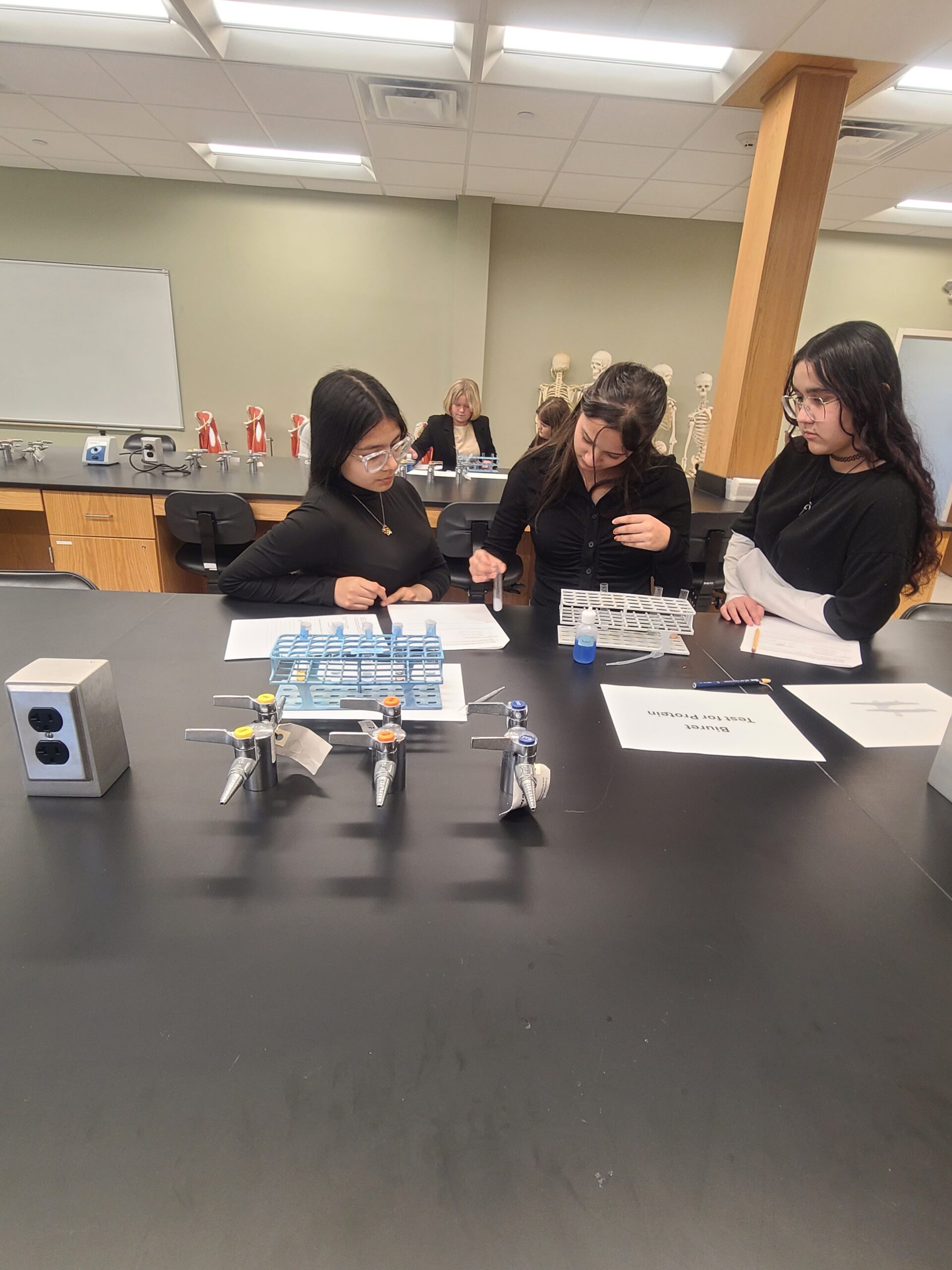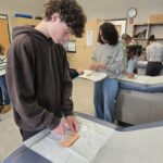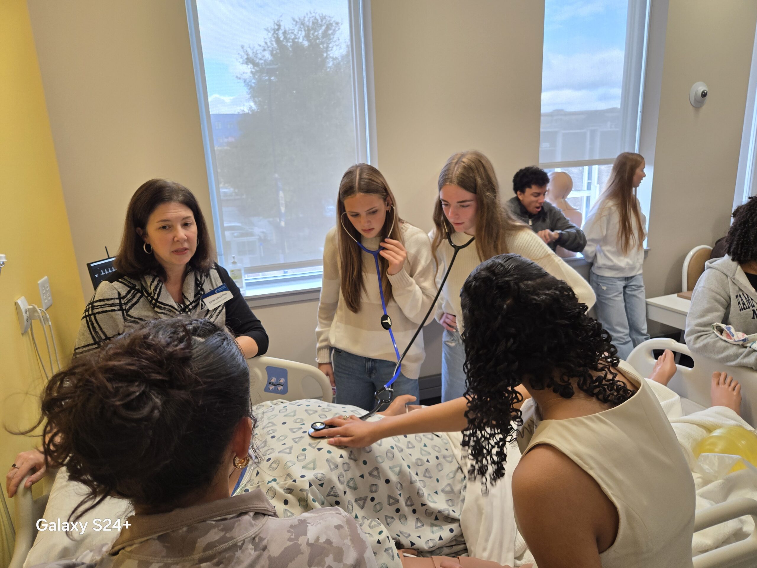 CTE Biomedical Science Freshmen took a field trip to the Northern Essex Community College Lawrence Campus. The students solved a forensics poisoning mystery by performing various lab tests on food. They got to use some equipment they had never used before like a water bath and a vortexer. They also toured the healthcare building and participated in various simulations, including removing surgical staples from a wound and interacting with various animatronic mannequins to feel pulse, count respiratory rate, measure blood oxygen levels and more. Students were also introduced to the many associate’s degree and certificate programs that the college has to offer. We are so grateful to Carolyn Knoepfler, Dean of STEM, Kathy Hudson, Dean of Healthcare and Biology professors, Ken Thomas and Kim Waligora for facilitating a fantastic day for the students. It was a fun and educational day!