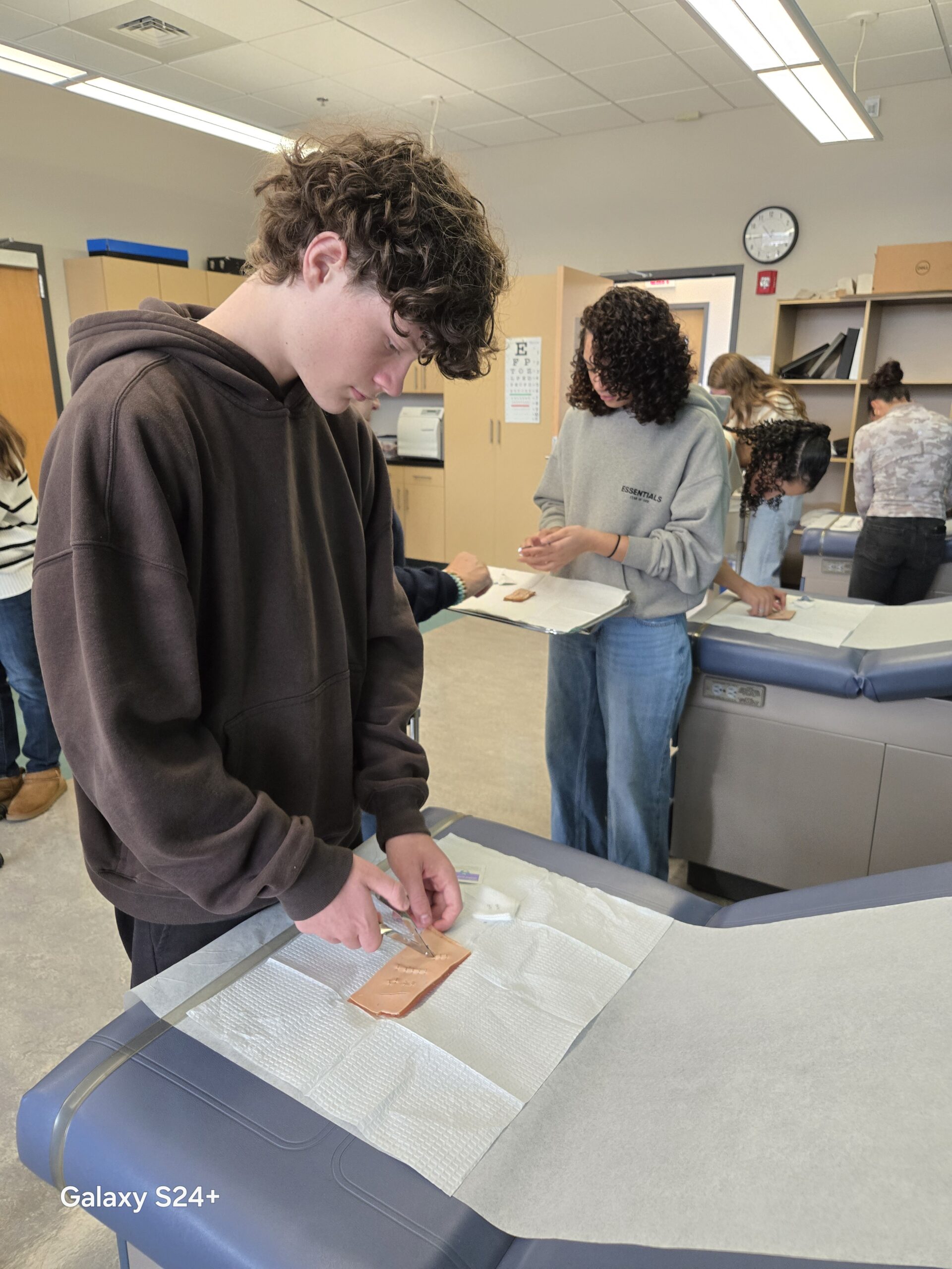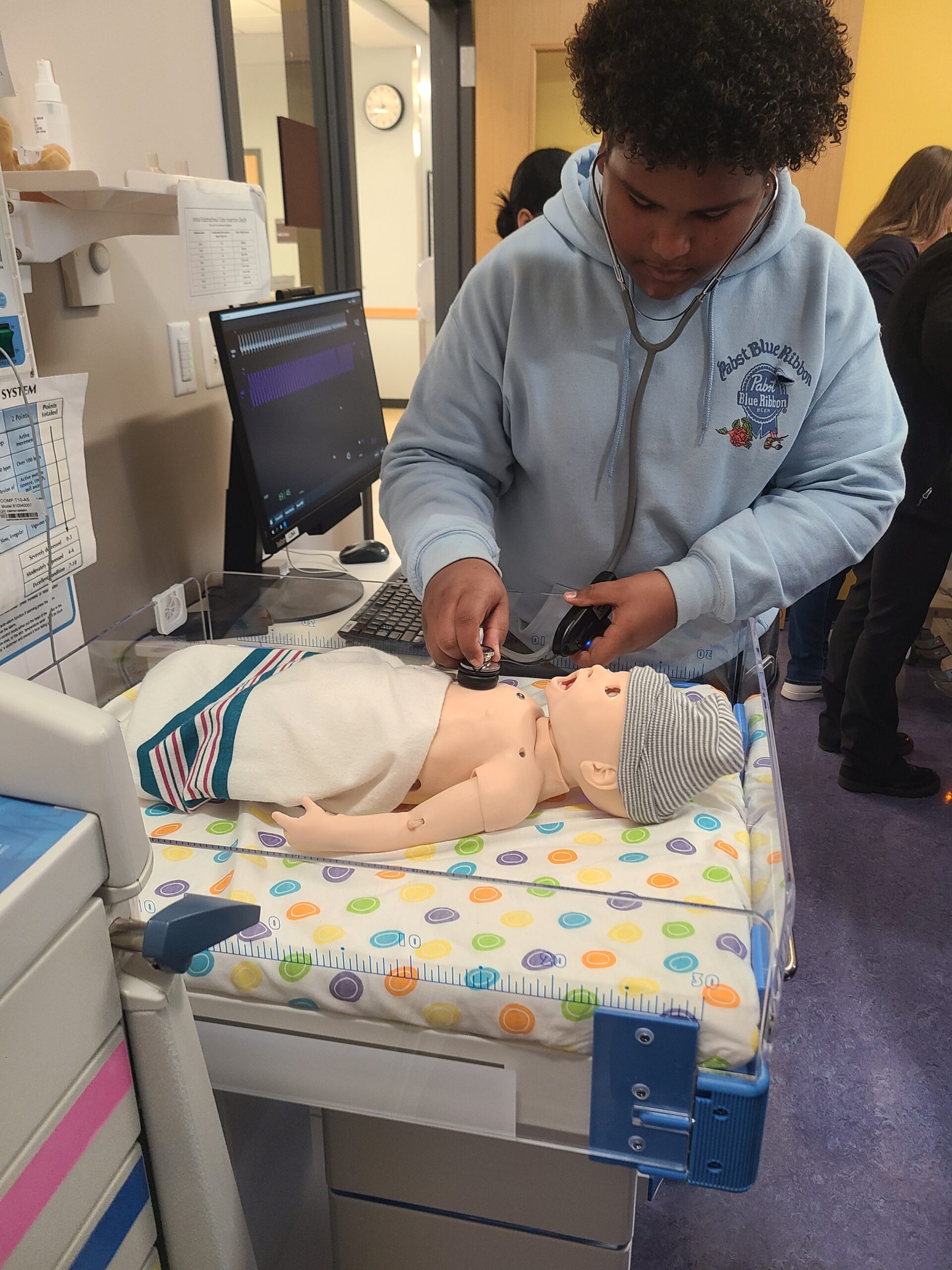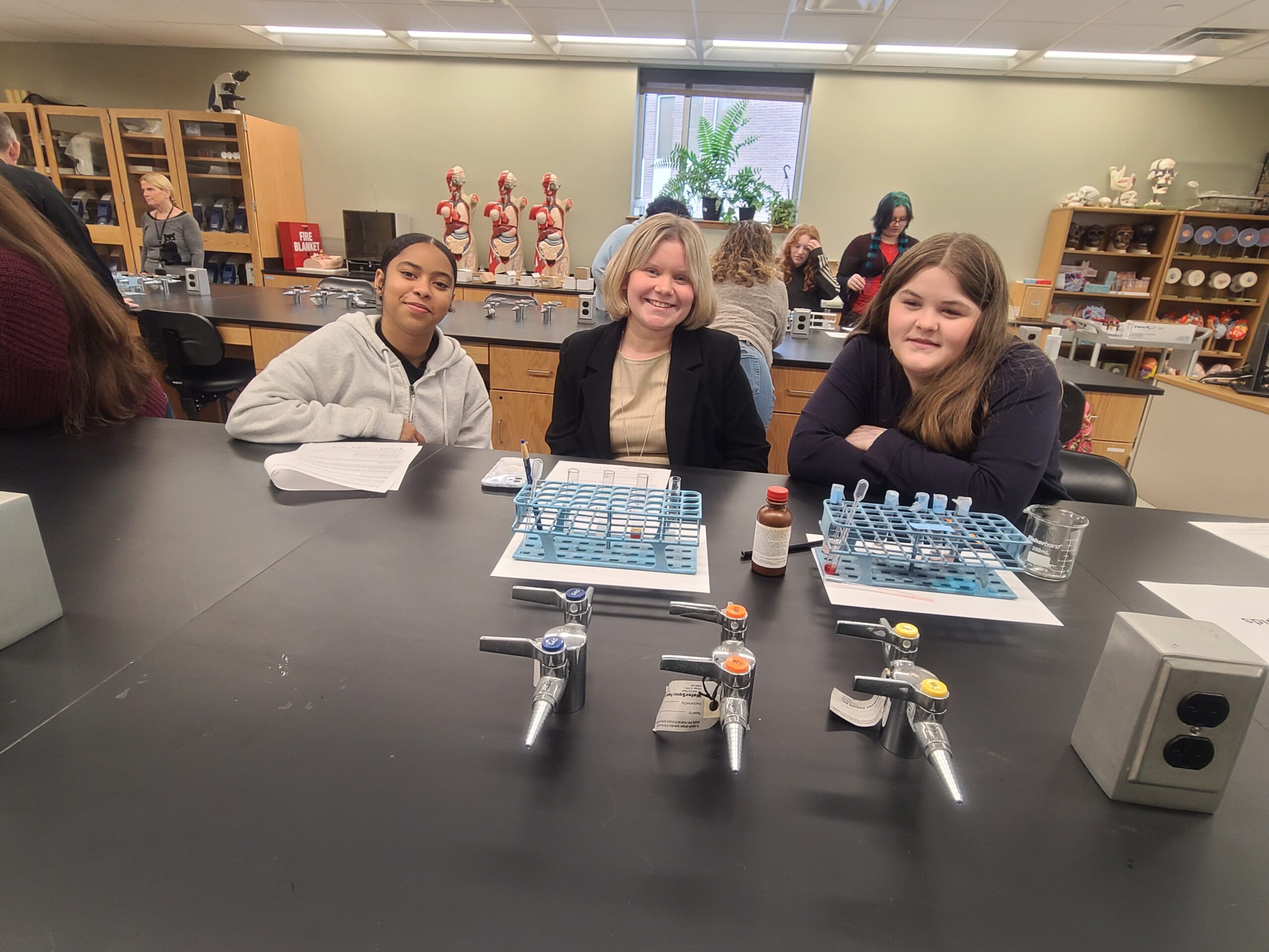 CTE Biomedical Science Freshmen took a field trip to the Northern Essex Community College Lawrence Campus. The students solved a forensics poisoning mystery by performing various lab tests on food. They got to use some equipment they had never used before like a water bath and a vortexer. They also toured the healthcare building and participated in various simulations, including removing surgical staples from a wound and interacting with various animatronic mannequins to feel pulse, count respiratory rate, measure blood oxygen levels and more. Students were also introduced to the many associate’s degree and certificate programs that the college has to offer. We are so grateful to Carolyn Knoepfler, Dean of STEM, Kathy Hudson, Dean of Healthcare and Biology professors, Ken Thomas and Kim Waligora for facilitating a fantastic day for the students. It was a fun and educational day!