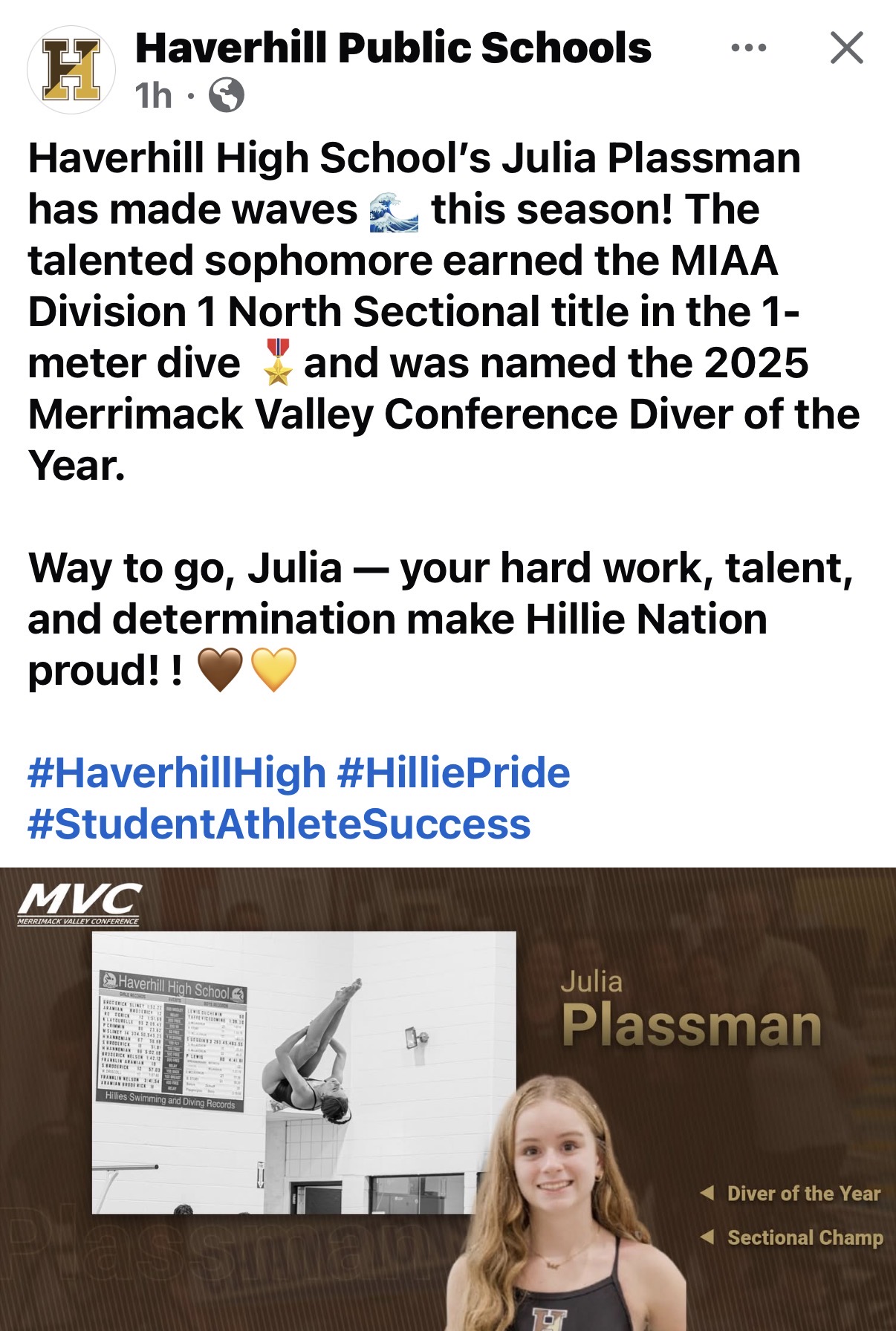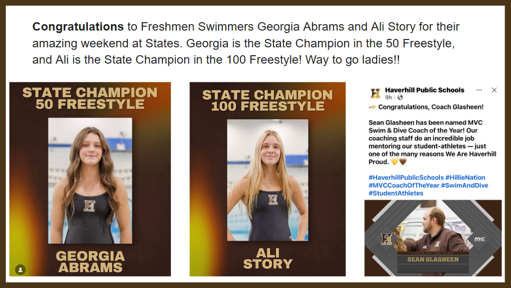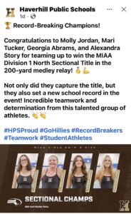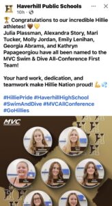 What an incredible finish- Haverhill placed 3rd at State Championship with only 4 pts between us and runner up. We had some incredible wins today and 2 new State Champions!! So many best times in swimming and great diving!