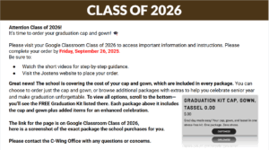 - Please order your cap & gown if you have not already! Please use the link below. Great news! The school is covering the cost of your cap and gown, which are included in every package. You can choose to order just the cap and gown, or browse additional packages with extras to help you celebrate senior year and make graduation unforgettable. To view all options, scroll to the bottom—you will see the FREE Graduation Kit listed there. Each package above includes the cap and gown, plus additional items for an enhanced celebration.