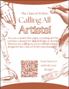 The Class of 2026 is looking for a student to design the Senior Class logo that will be printed on our class sweatshirts and t-shirts!