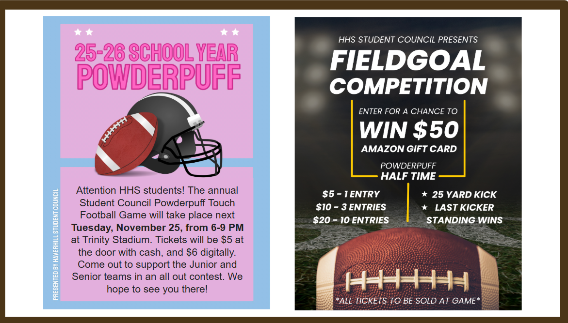 - Powderpuff game at Haverhill Stadium 7-9pm – $5