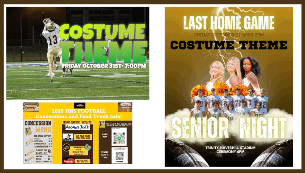 - HHS Football game, last home game of the season, including Senior night (6pm)!