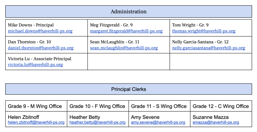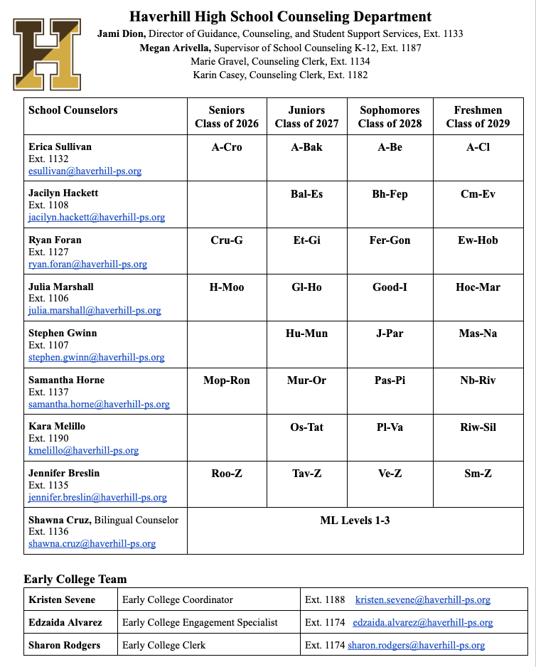 Additionally, Haverhill High School staff is expected to model this policy as well and will not have cell phones out during instructional times in class. Thank you for your support and cooperation as we work together to create the best possible learning environment.