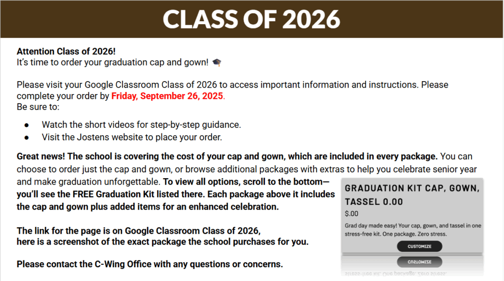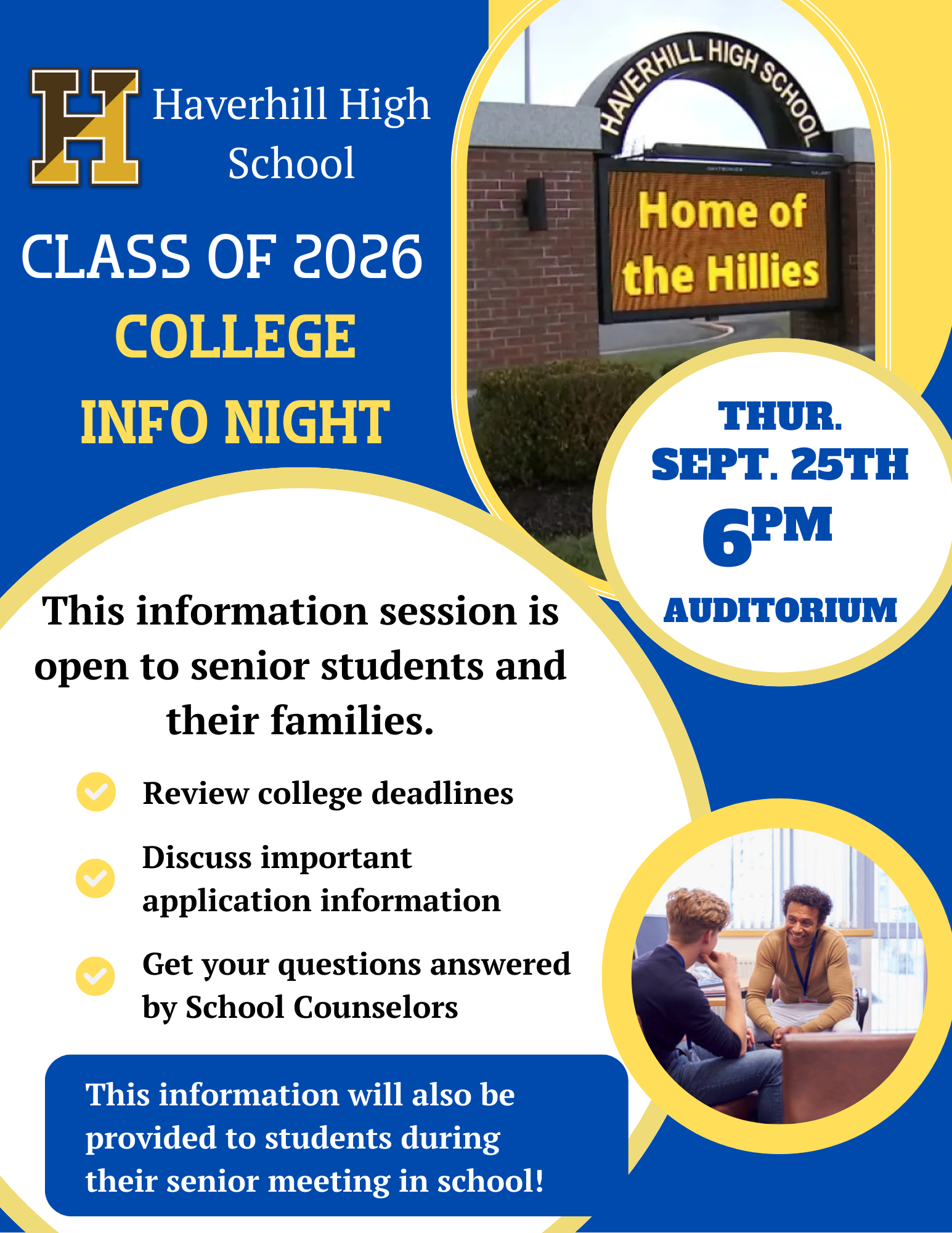 Thursday, September 25, 2025 – Class of 2026 – Senior College Information Night