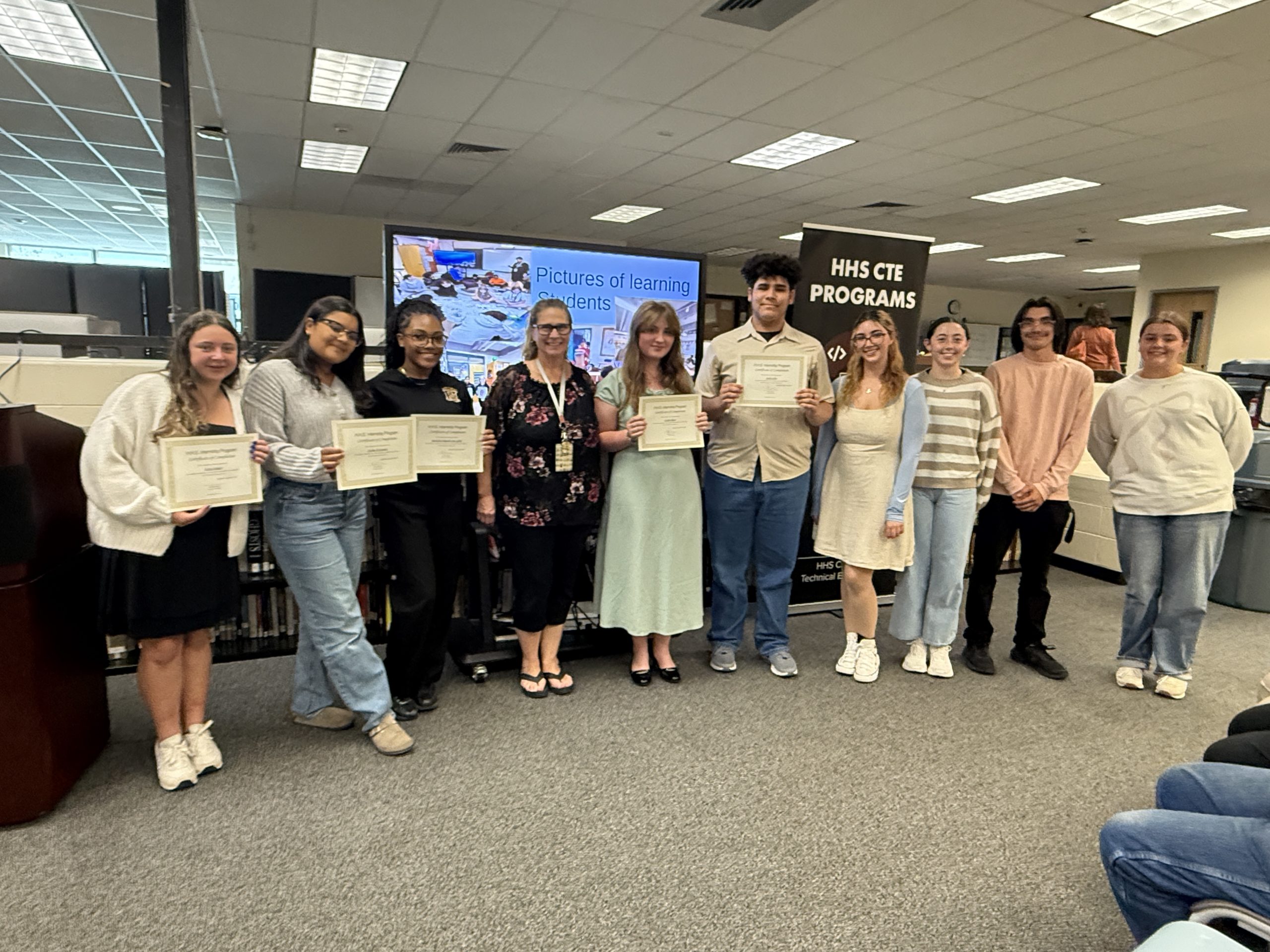 Spotlight on our HHS Summer Interns! We recently celebrated our summer interns as they delivered their final presentations and received certificates of completion. Surrounded by parents, administrators, worksite mentors, and teachers, our students were recognized for their growth and professionalism.